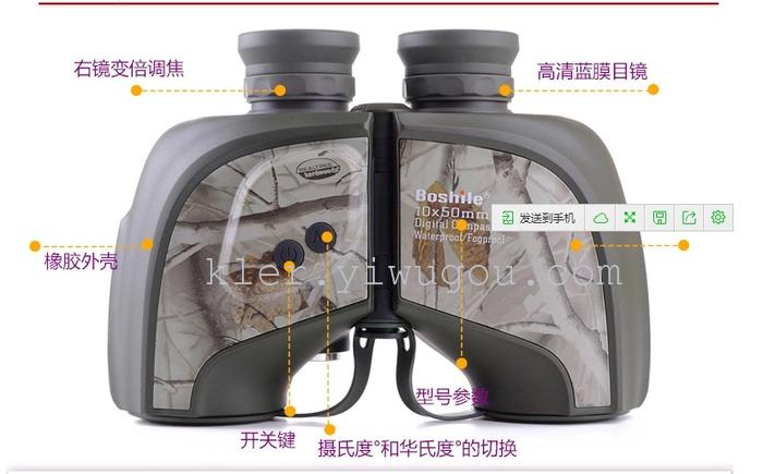 10X50羅盤測距溫度計高清雙筒望遠鏡