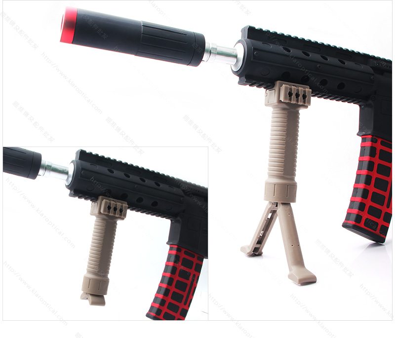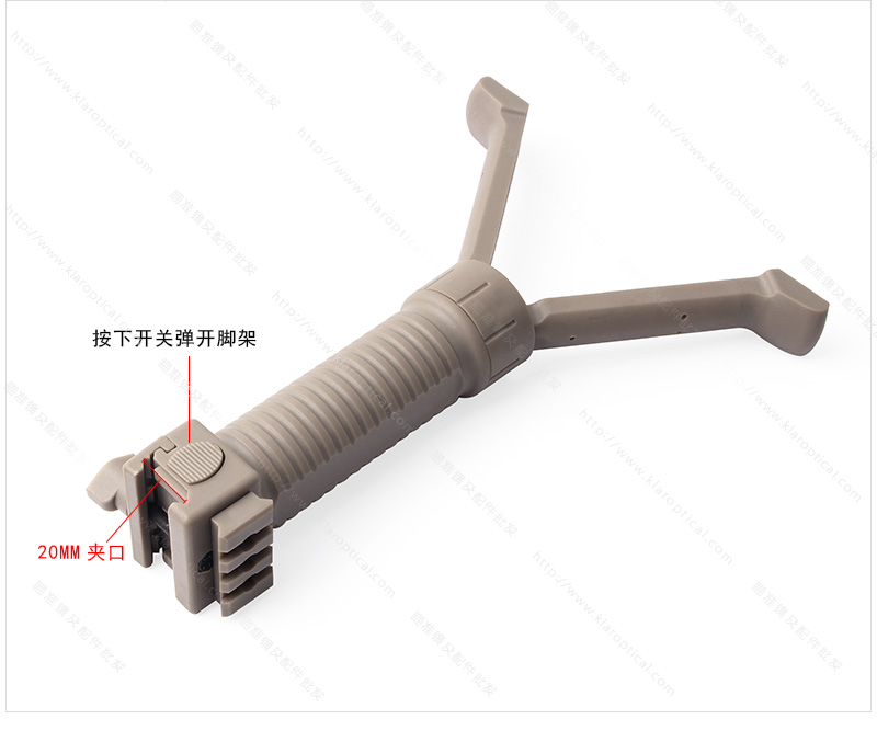 按下按鈕解鎖Bipod Legs,并收回彈簧加載的腿,推回。