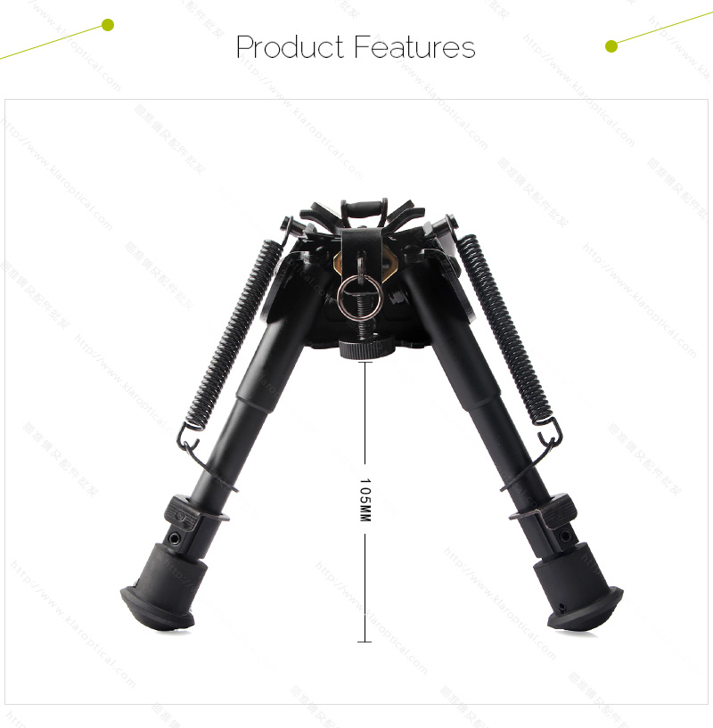 這個兩腳架是由最好的飛機級鋁和材料雙腳架功能缺口鎖定腿,旋轉(zhuǎn)樞軸蘇在不平的地面或不同的拍攝條件,橡膠腳,保護墊對雙腳架,以不損害