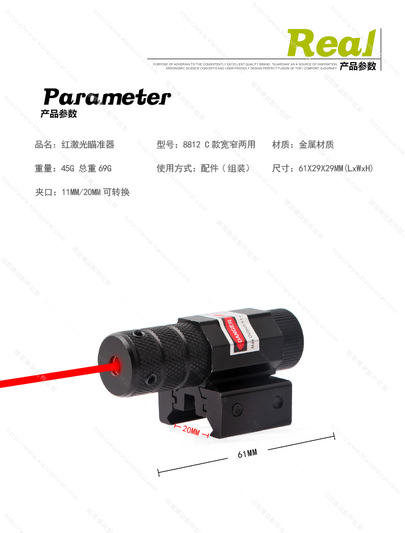 8812C玩具瞄準鏡下掛寬窄兩用紅激光