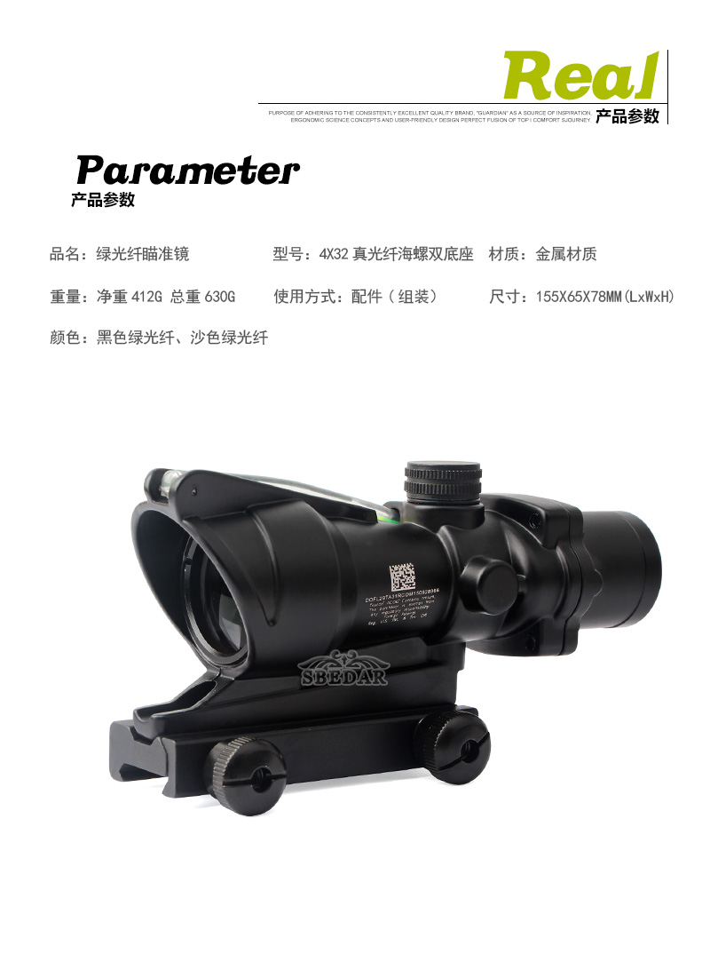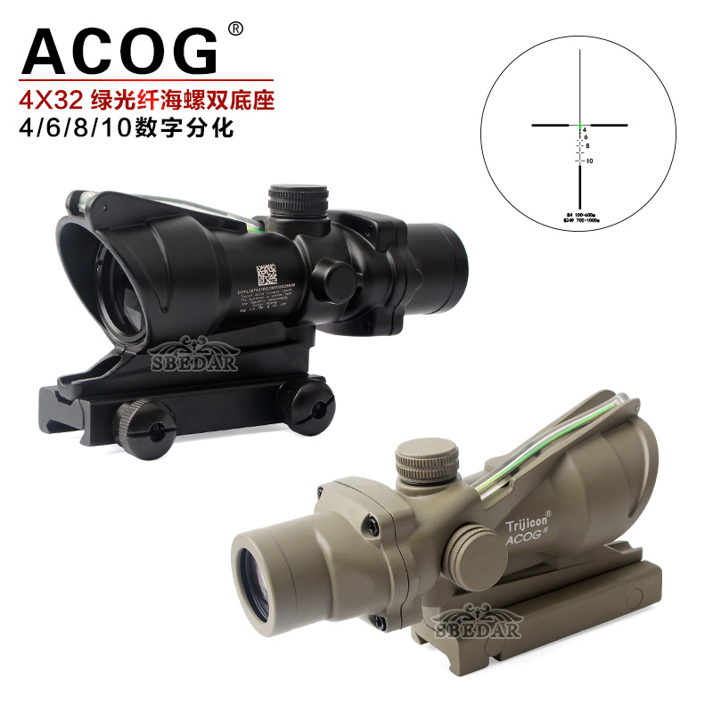 4x32真綠/紅光纖4 6 8 10分化全光學瞄準鏡光纖小海螺