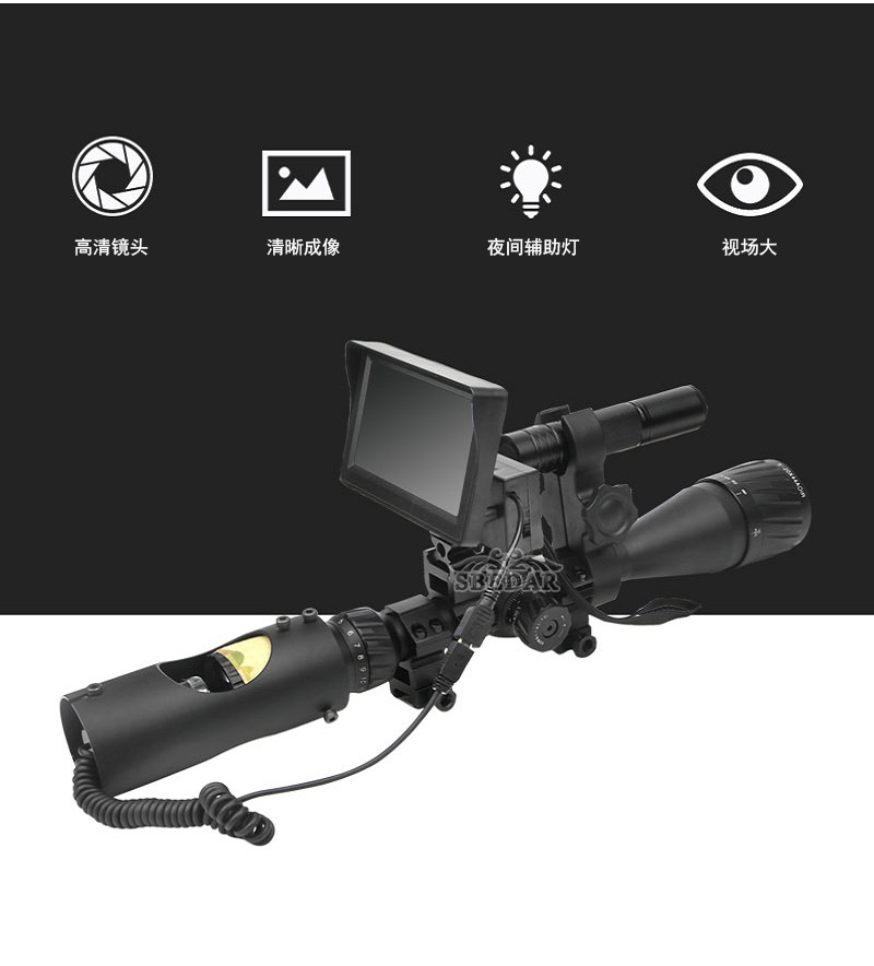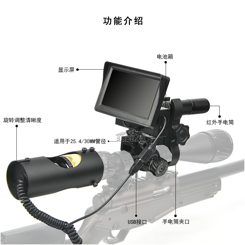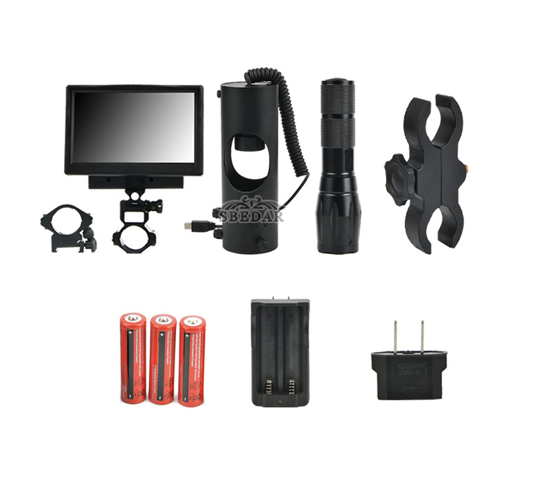 配置:夜視+顯示器+紅外手電筒+配件+步槍瞄準器+顯示器(2個18650電池)及紅外線手電筒(1個18650電池)