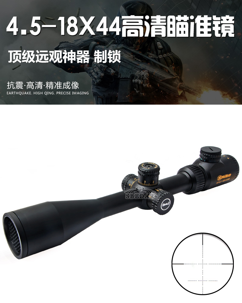 4.5-18x44金字高清抗震制鎖紅綠光學狙擊瞄準鏡