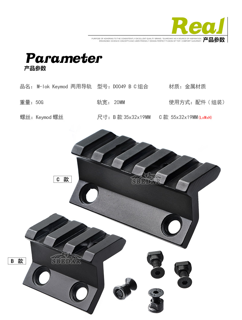 D0049BC組合Mlok Keymod兩用斜導軌組合裝