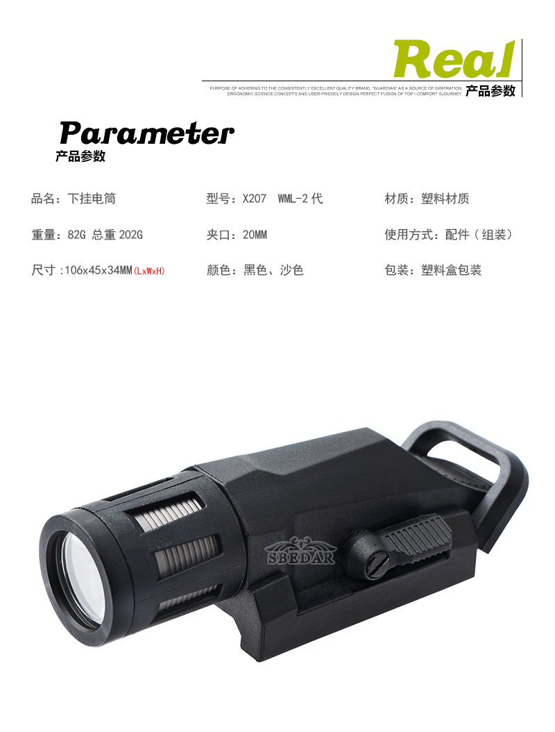 WML二代帶側撥開關瞄準鏡下掛LED強光戰術手電筒x207