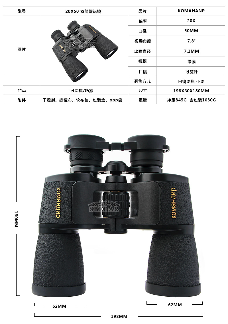 金字商標 雙筒大目鏡20x50防水抗震望遠鏡