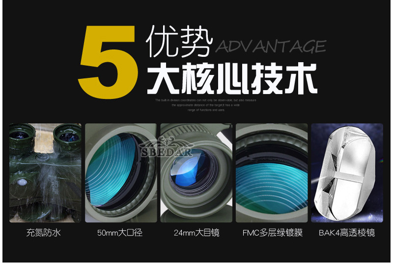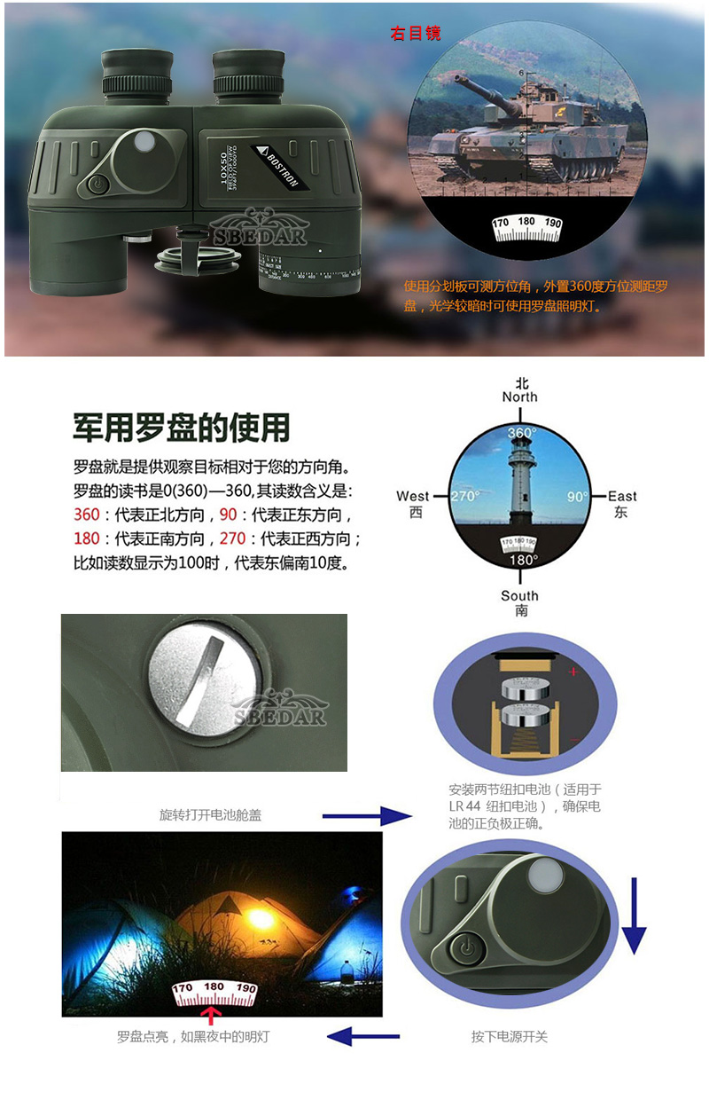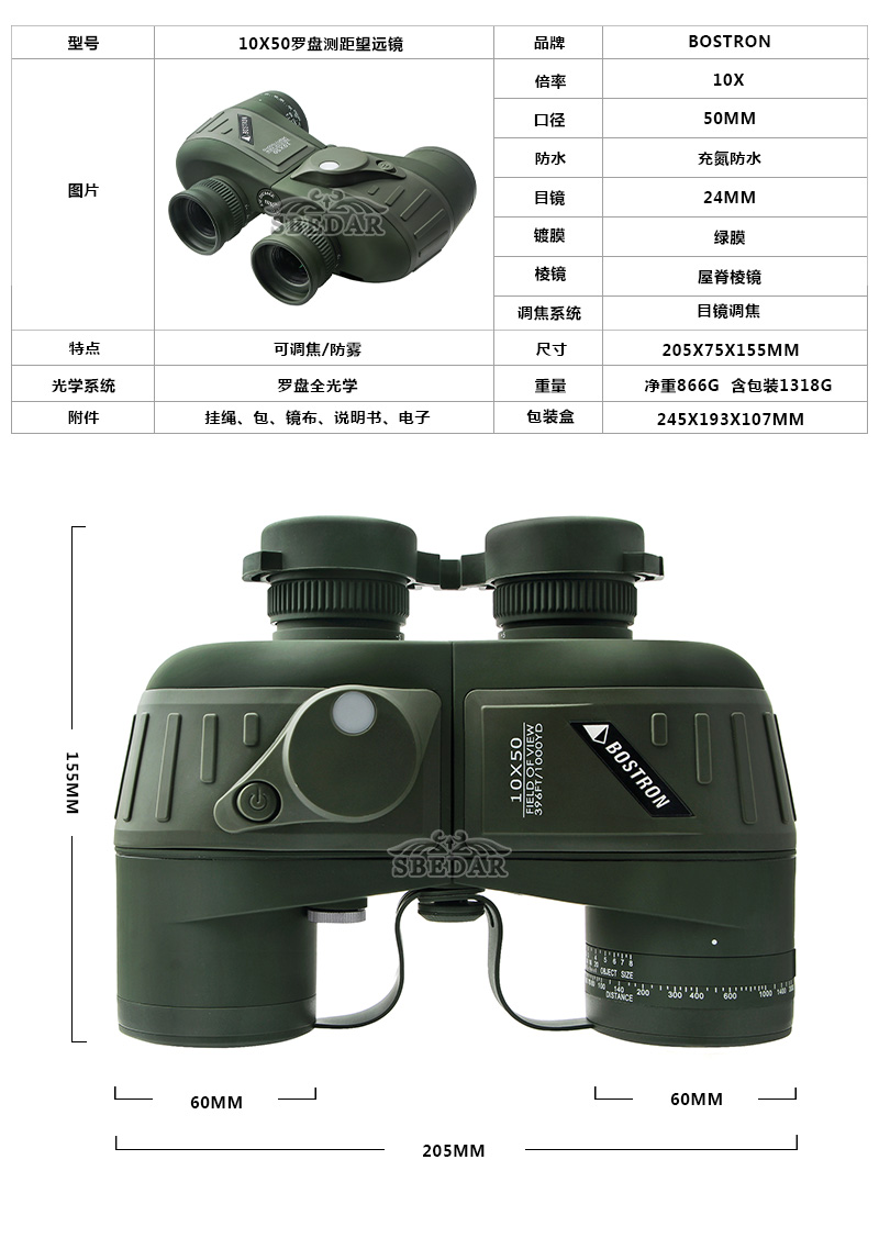 博士頓10x50大目鏡雙筒望遠鏡羅盤測距抗震望遠鏡