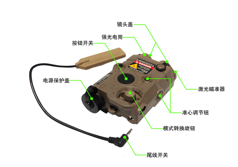 新款黑色沙色FMA帶ir款紅激光鐳射加led電筒含鼠尾