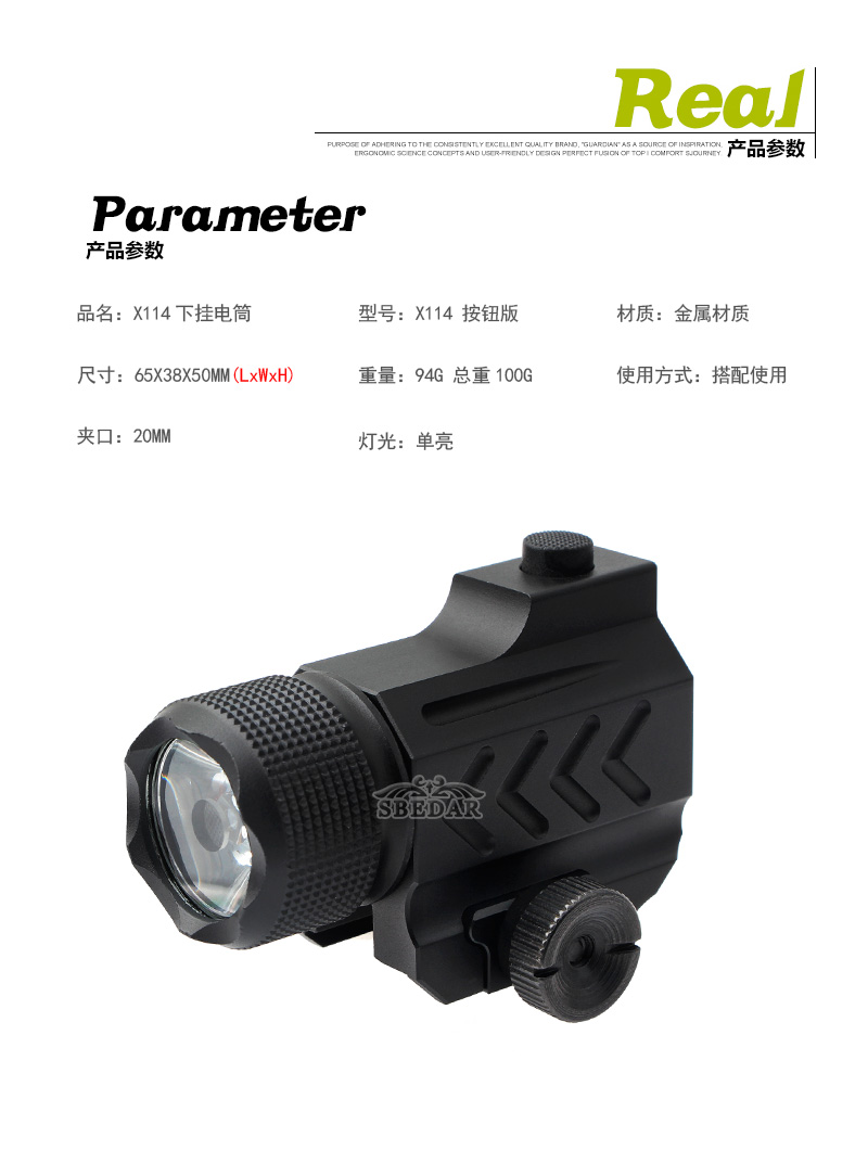 x114新款按鈕版下掛20mm導軌金屬手電筒