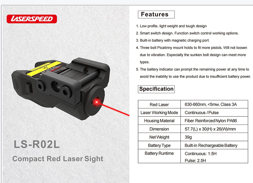 ls-g02新款9921紅激光下掛充電款瞄準器