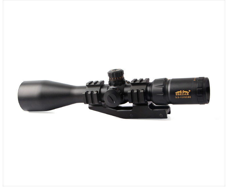 SBEDAR 3.5-10X50BE金字版瞄準(zhǔn)鏡,,。倍數(shù):3.5-10倍。,物鏡口徑:50mm。送水平儀。。 配多功能連體戰(zhàn)術(shù)夾。。。原裝夾具寬度20mm。,,。30mm管徑一體管。。。制鎖調(diào)節(jié)鈕