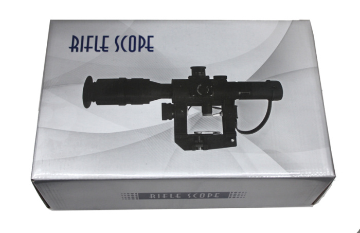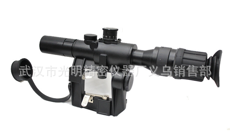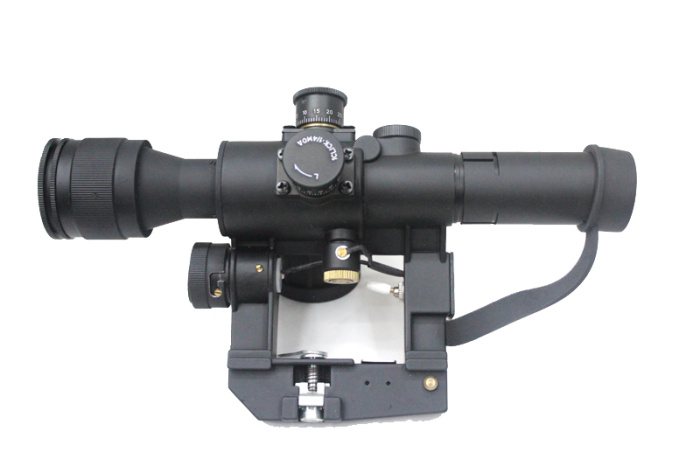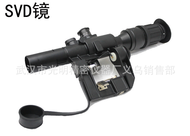 4×26 SVD側裝瞄準鏡帶快裝,自帶消光筒,表面噴彈性漆,手感很好,使用拋物線分劃板,所有鏡片都是寬帶增透綠膜鏡片