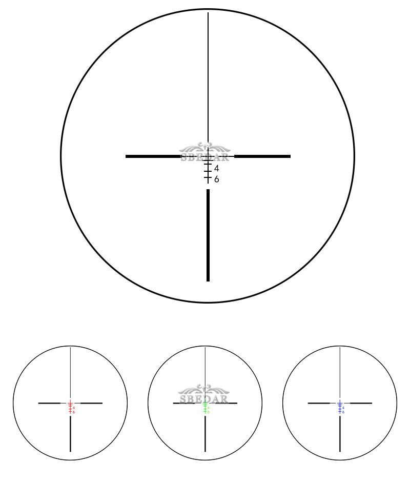 -照明:紅、綠、藍(lán)(每種顏色3個(gè)亮度設(shè)置),玻璃刻劃十字線