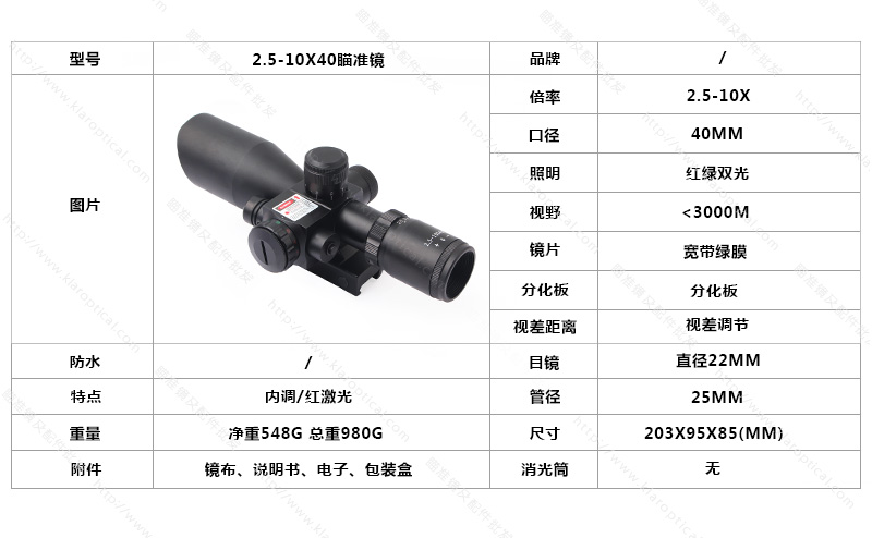 它是一種超緊湊的戰(zhàn)術(shù)瞄準(zhǔn)鏡,專為近距離、舒適的眼部放松距離拍攝而設(shè)計,光學(xué)清晰度高,放大2.5-10倍,目標(biāo)直徑為40毫米的紅色激光。