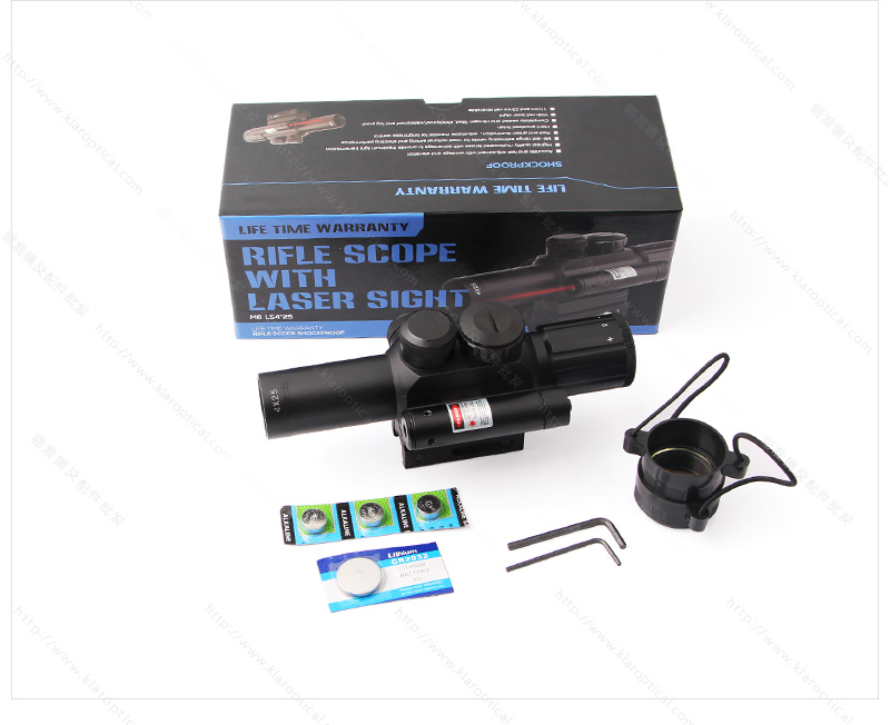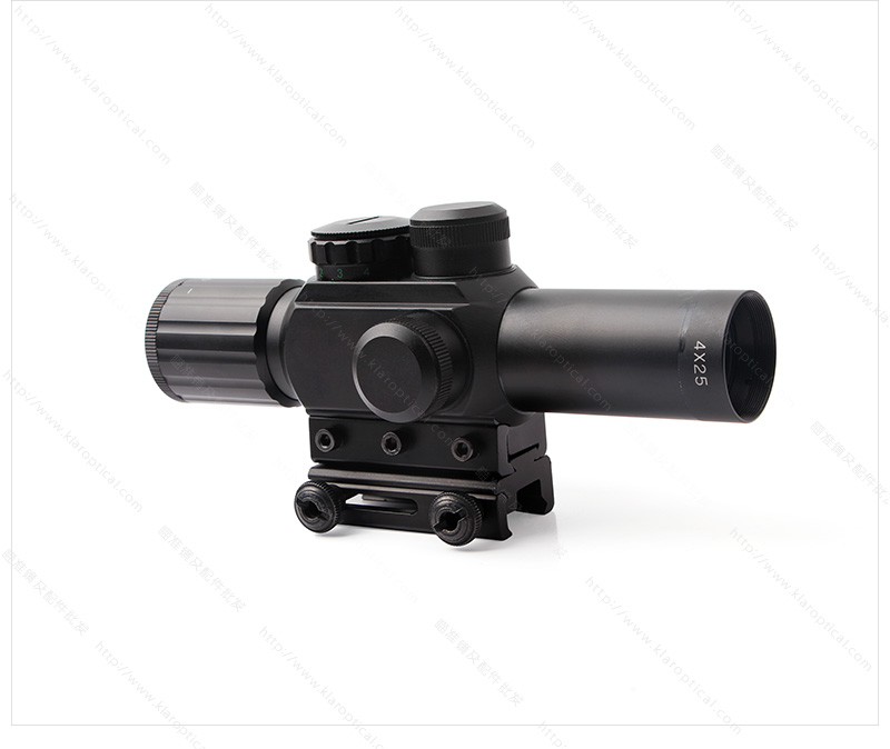 4X25步槍瞄準(zhǔn)具紅色激光瞄準(zhǔn)器和被照亮的紅色/綠色米點十字線,適用于所有野外條件。
