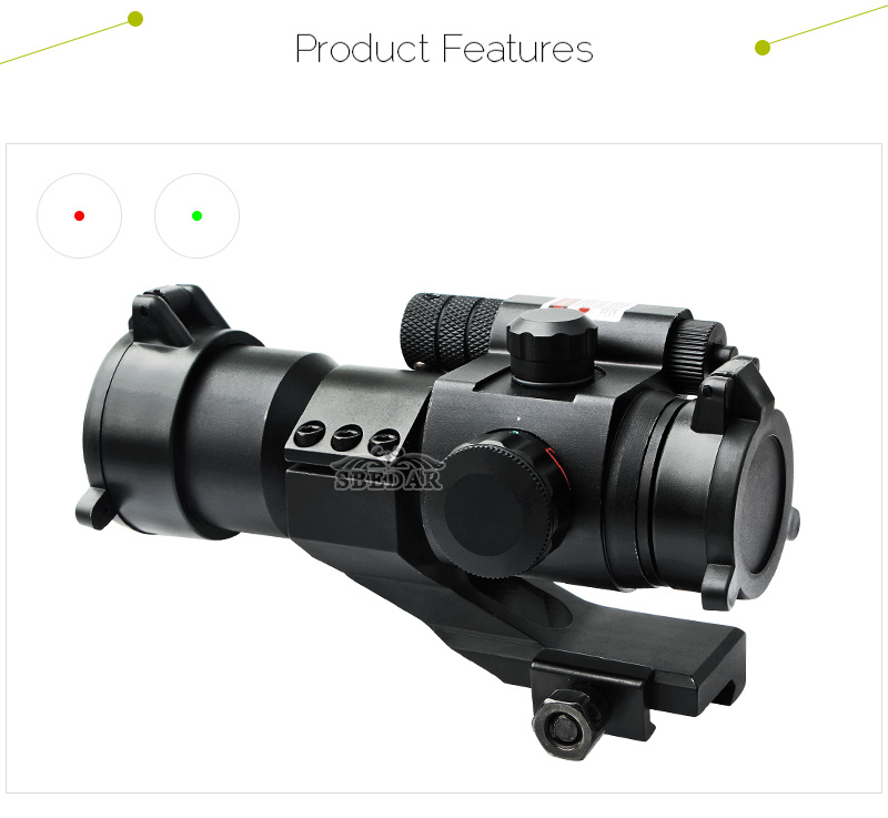 全息瞄準鏡倍數:1X倍 。內置5檔調節紅綠點 ,外置激光:紅激光 。。材質:鋁合金。。準心上下左右可調節。。。卡槽:20MM附件 。干燥劑 。擦鏡布,