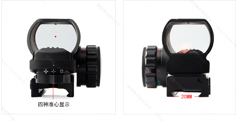 103瞄準鏡四變點內紅【產品名稱】:全息瞄準器【產品特點】:內紅綠點隱形 【產品型號】:103A【產品倍數】:1倍【產品口徑】:22mm【產品夾具】:20mm【是否帶燈】:紅綠光