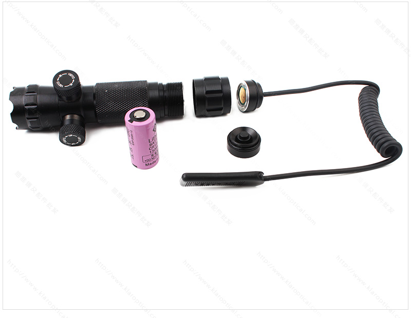 【包含】:夾具、CR123鋰電池1枚、控制開關、黑色硬盒包裝、2內六角扳手和鐳射發射器本體。